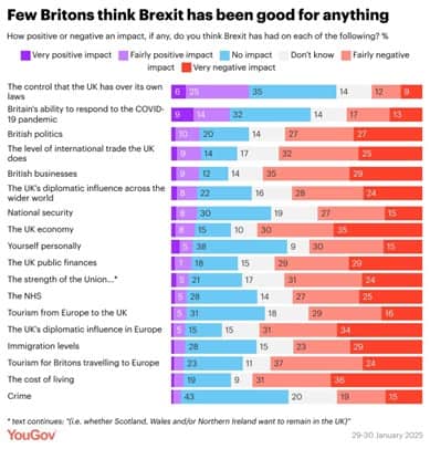 YouGov som är ett internationellt marknadsundersökningsföretag med huvudkontor i Storbritannien, publicerade i slutet av januari nedanstående data. Slutsatsen är att Brexit är ett totalt misslyckande och att många människor nu ångrar sig. Ett sorgligt kapitel i den europeiska historien.