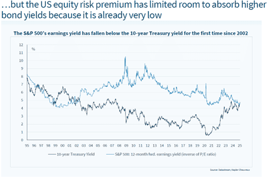 Vad händer om den amerikanska räntan stiger ytterligare? Vår gissning är att aktiemarknaden kommer under press då det inte finns mer att ta av en krympande riskpremie. I Europa är riskpremien i skrivande stund cirka sex till åtta procent, så sett strikt ur det perspektivet, är det inga problem.