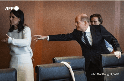 Det tyska valet om några veckor blir väldigt intressant. Det är ju minst sagt stökigt inom tysk politik och vi gissar att årets bild redan är tagen, se nedan när Olaf Scholz (SPD) försöker hindra sin koalitionspartner Annalena Baerbock (De gröna) att lämna rummet. Skillnaderna dem emellan vad gäller hjälpen till Ukraina är betydande där De gröna har en mycket mer proaktiv Ukrainapolitik än SPD.