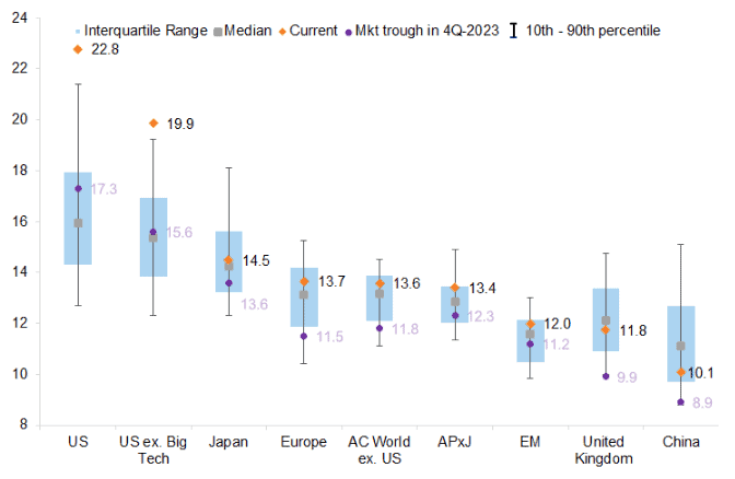 Nedan en ögonblicksbild av värderingen på ett antal olika aktiemarknader.