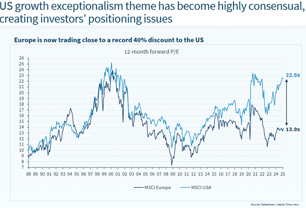 Europa har under årets inledning hämtat in marginellt i värderingsskillnaden mot USA.