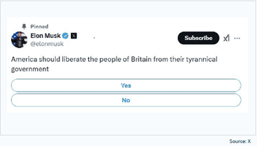 Att Elon Musk lägger sig i och försöker påverka olika länders politiska utveckling måste betraktas som djupt bekymmersamt. Det har varit mycket om Tyskland och stödet för AfD på sistone, men det finns även andra exempel.
