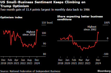 Oavsett allt detta har optimismen bland USA:s mindre bolag stigit markant sedan det amerikanska valet i november. Ett möte med ett av våra bolag innan jul med en betydande amerikansk verksamhet bekräftade just detta. Optimismen är kraftigt stigande.