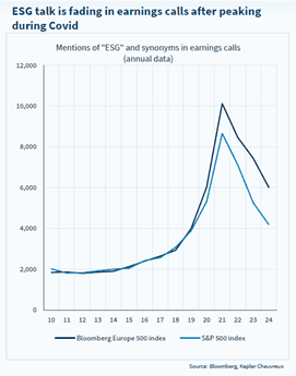 Det pratas mindre om ESG nu jämfört med för några år sedan, både bland europeiska och amerikanska företag.