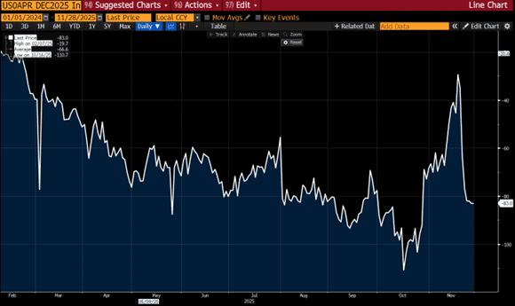 Trots att vi är i december är investerare ovanligt riskaverta, vilket också är positivt. En eventuell amerikansk räntesänkning den 10:e december kommer sannolikt ändra på det.