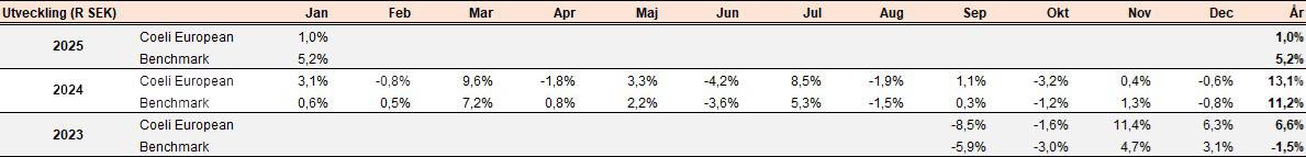 Förvaltarkommentar Coeli European R SEK – januari 2025