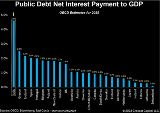 USA betalar nu 5 procent av BNP i räntekostnader. Det kommer sannolikt sluta i tårar. Oklart när dock.