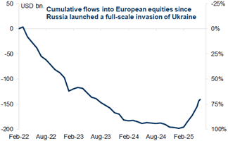 Efter många års utflöden från de europeiska aktiemarknaderna har det i år vänt med kraftiga inflöden.