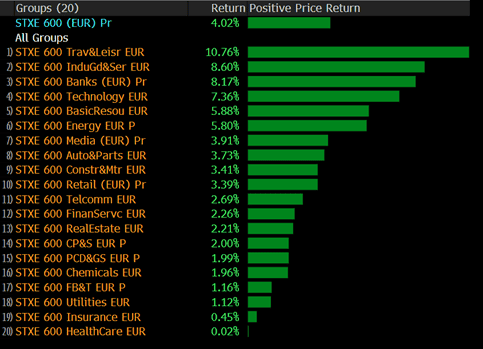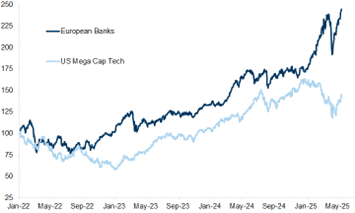 Europeiska banker leder årets uppgång för femte året i följd. Sedan januari 2022 är uppgången närmare 150 procent jämfört med cirka 40 procent för de stora amerikanska techbolagen. Fonden äger i sektorn österrikiska Bawag och tyska Commerzbank.