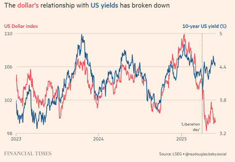 Korrelationen mellan USD och den amerikanska 10-årsräntan har kollapsat. Något verkar ha hänt den 2 april……..