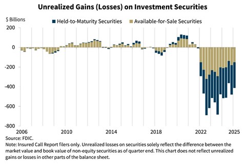 Den höga amerikanska räntan har lett till en del orealiserade förluster bland obligationsägarna.
