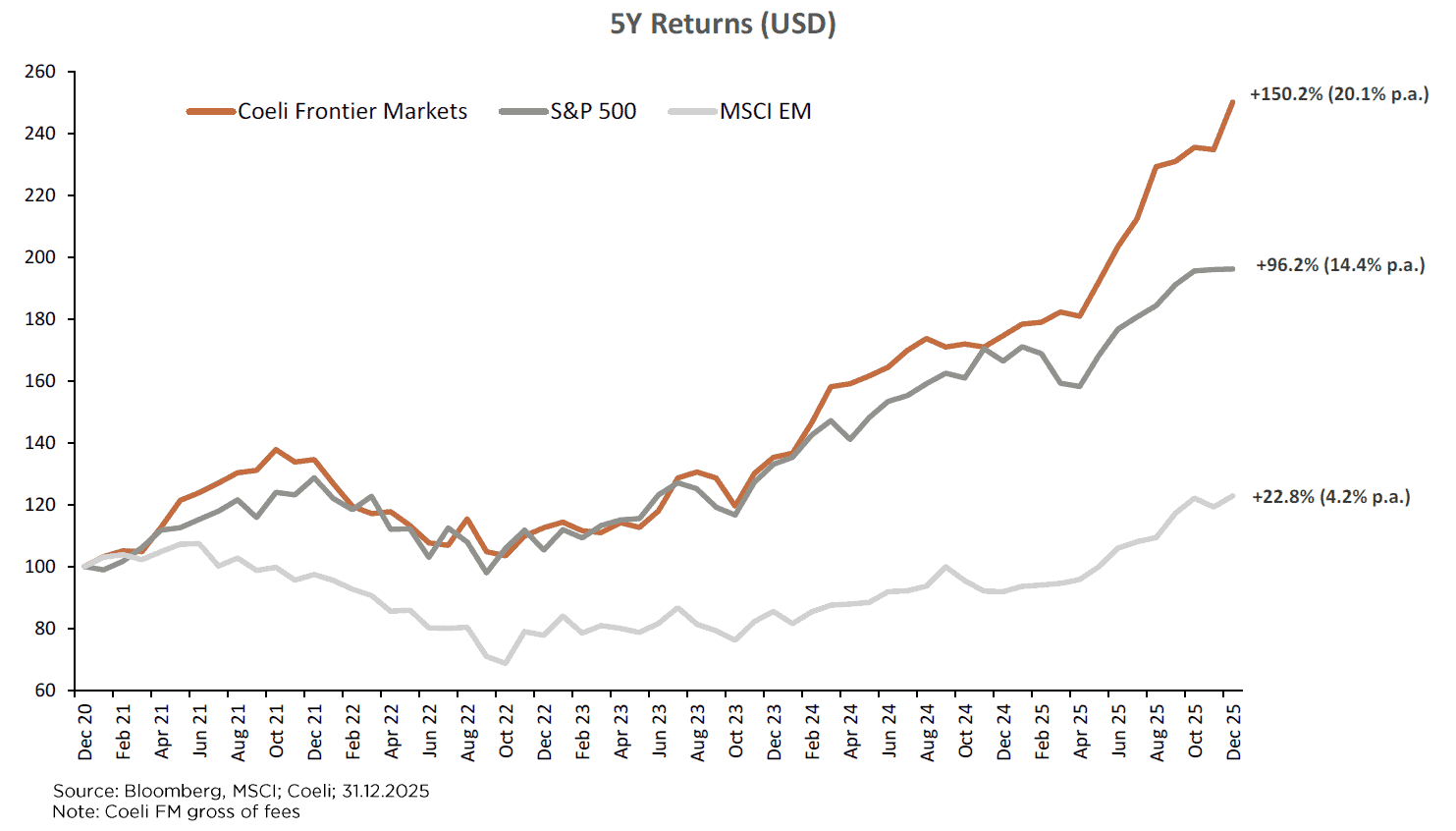 En fond som avkastat 150% på fem år och ändå handlas till halva värderingen av breda tillväxtmarknadsindex. Det är utgångsläget för Coeli Frontier Markets inför 2026.